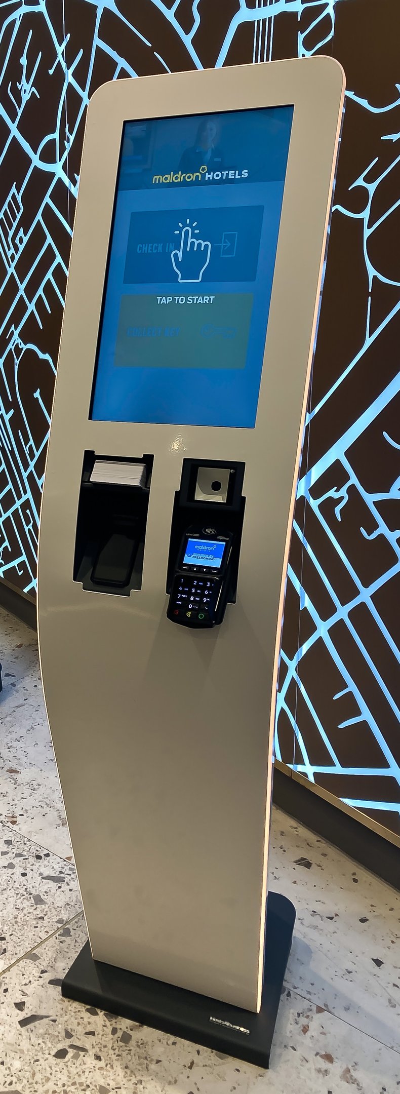 Many chains have hotels with different infrastructure that means the software and kiosks have to be flexible to be able manage the different hotel infrastructures without needing to re-design the kiosk each time. The hotel Figur does this well. Catering for different chip and pin units along with different RFID card encoders, all in the same production runs.